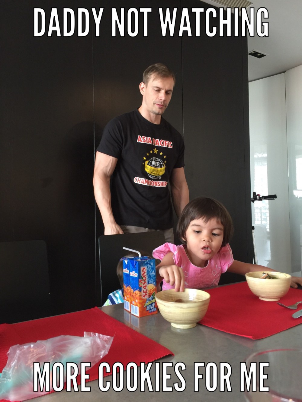 My kids eat even healthier most of the time, thanks to my lovely wife. She is most concerned about having the right nutrition. This means, having home cooked just for them. Our helper has to learnt how to cook and prepare healthy meals for the children. With them around, I do not need to worry about my children’s diet at all.