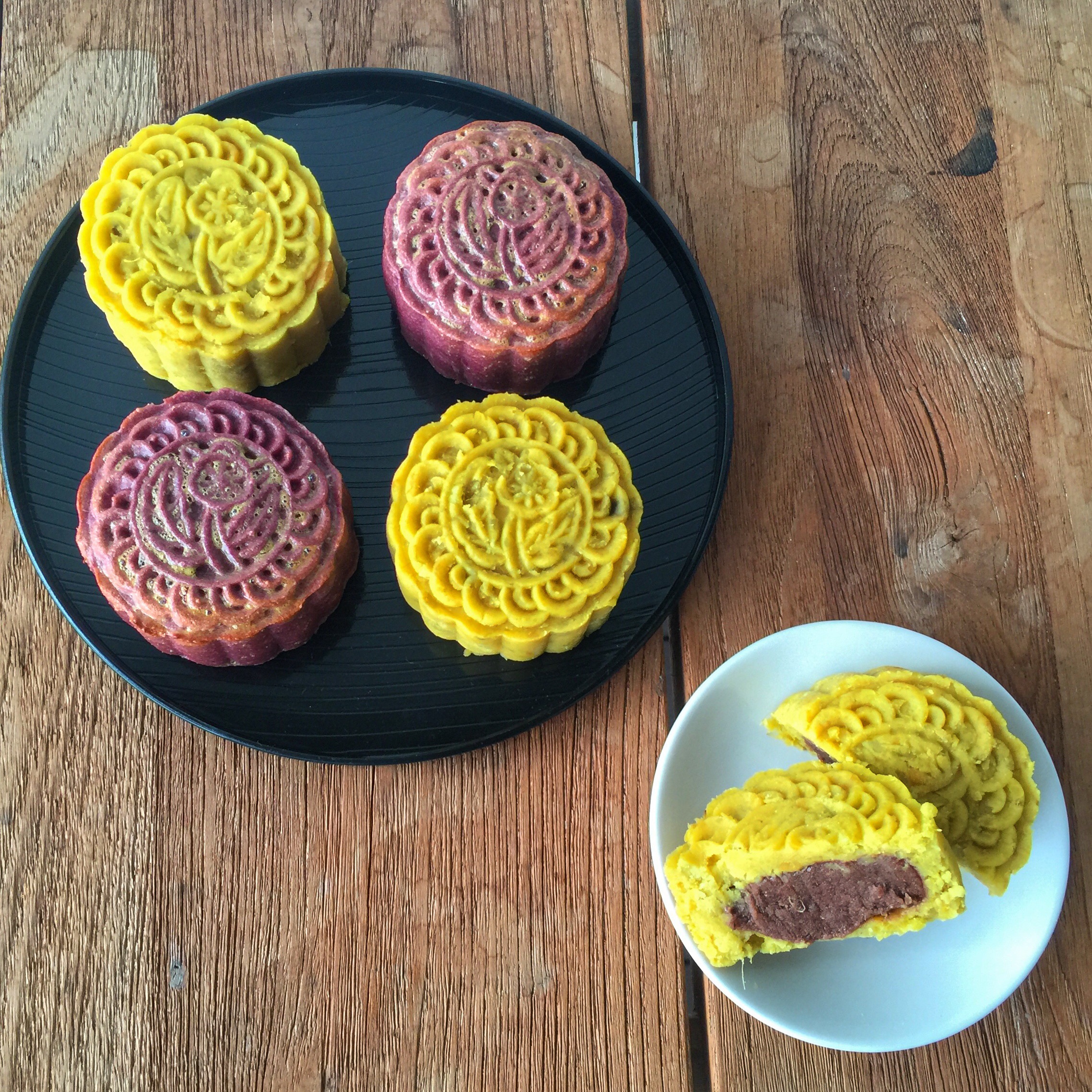 The amazing thing about these mooncakes is that they are much lower in calories compared to those bought in stores. The colours from the different sweet potatoes are also very pretty (purple, yellow and orange)!